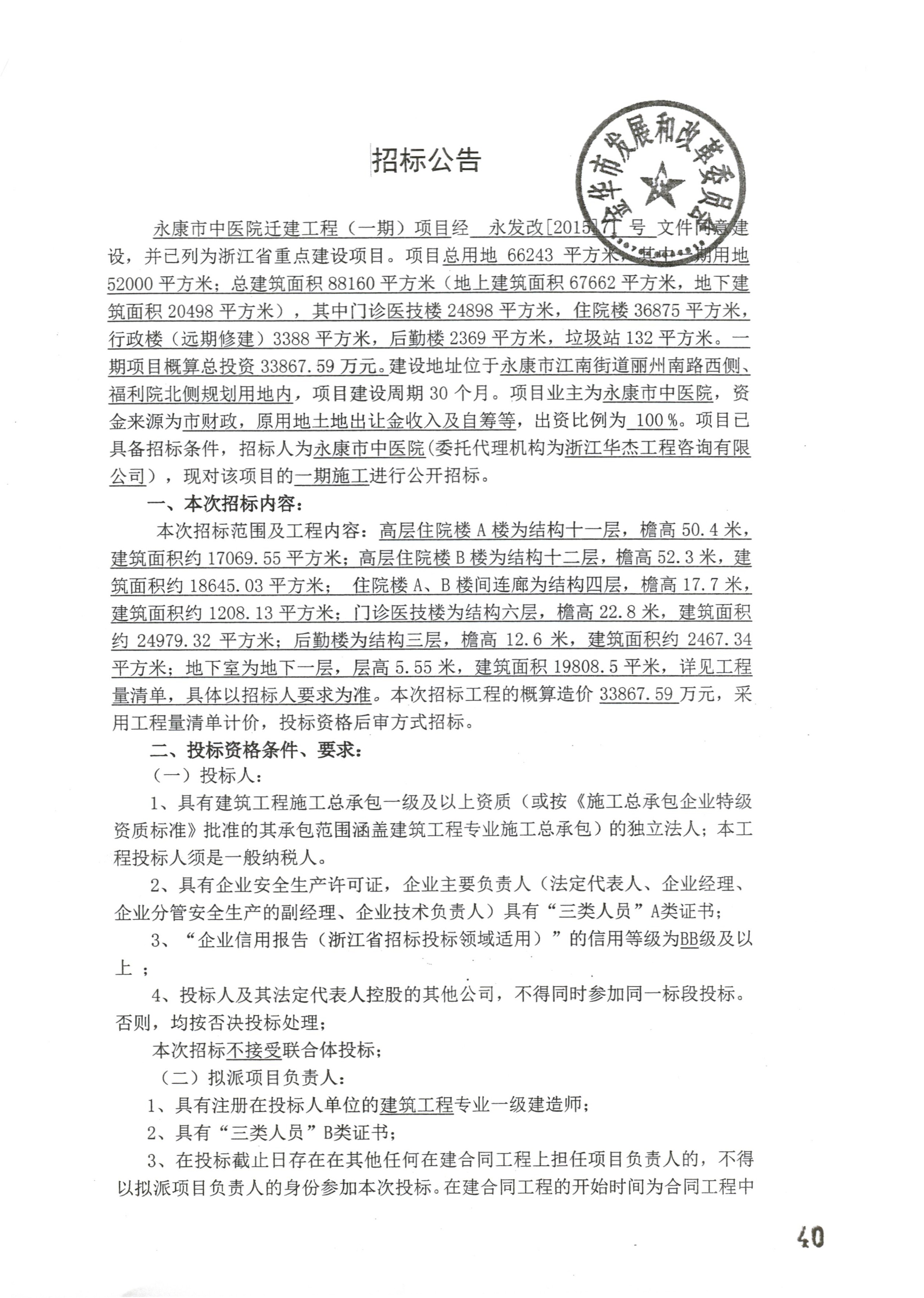 3586政务公开/col/col1229163319/index.html重点领域信息公开/col/col1229164397/index.html重大建设项目/col/col1229362254/index.html2019年/col/col1229483208/index.html永康中医院迁建工程(一期)/col/col1229473459/index.html招标投标信息/col/col1229473462/index.html